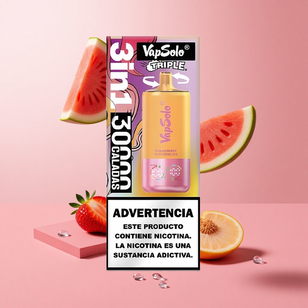 VapSolo Triple 30000 Puffs תות-אבטיח ולימון-אפרסק 40ml 50mg/ml