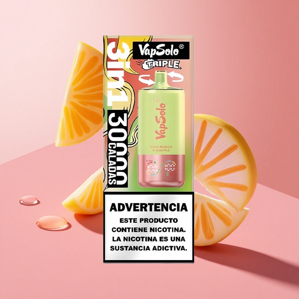 VapSolo Triple 30000 Puffs מנגו חמוץ אננס 40מ\"ל 50מ\"ג/מ\"ל